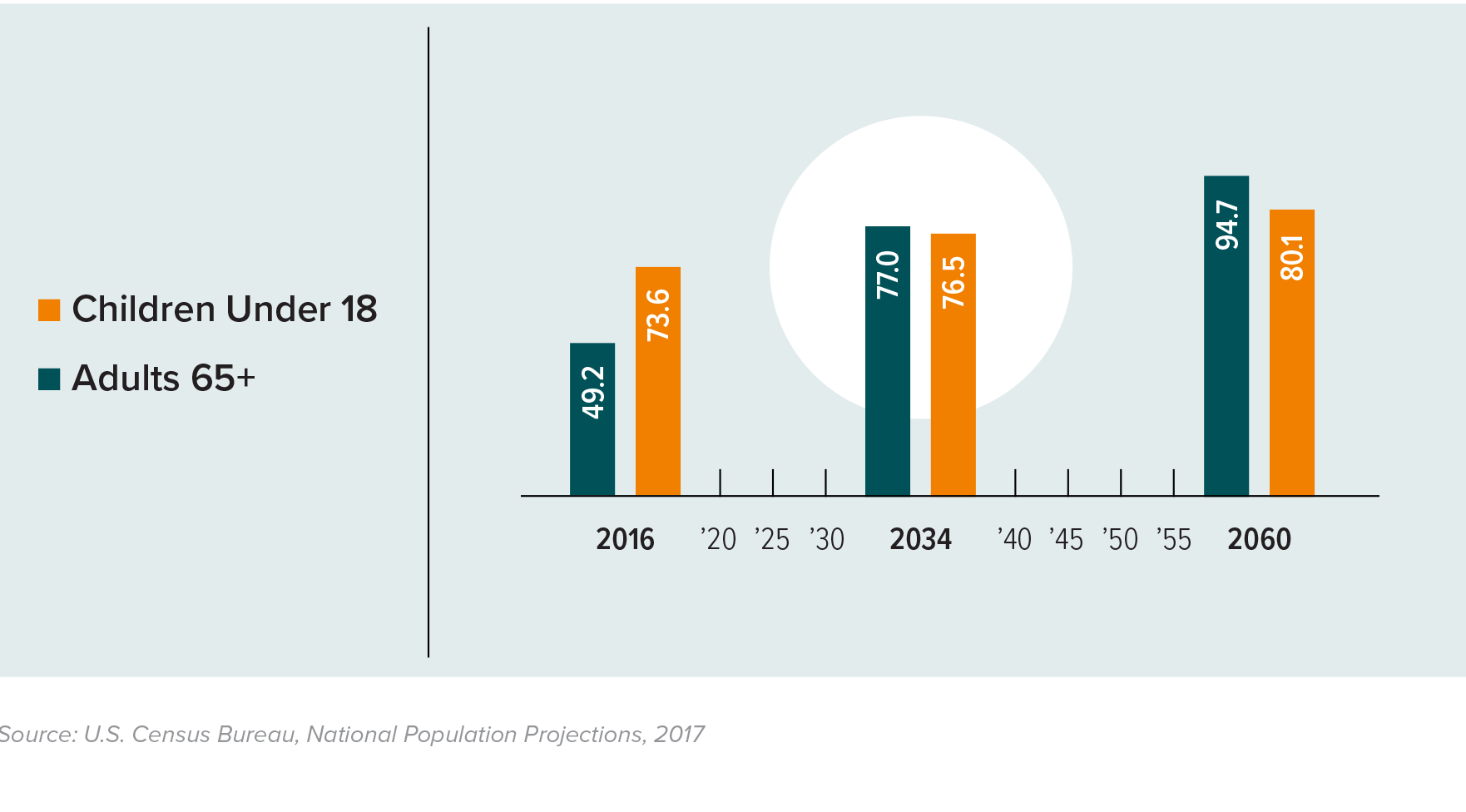 By 2034, older adults outnumber others for the first time in U.S. history.